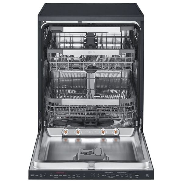 The Lg Free Standing Dishwasher (Model: Dfb512Fp) delivers a superior cleaning performance, accommodating up to 12 Place Settings. This highly efficient appliance features 14 customizable wash programs and utilizes Heat Exchanger drying, ensuring energy efficiency and hygienic results. It operates ecologically, consuming only 10.5 Liters of water per cycle, offering both powerful cleaning and resource conservation.